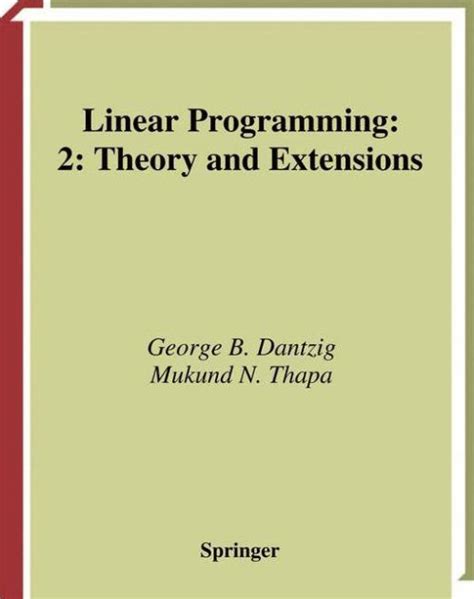 Read Linear Programming 2 Theory and Extensions 1st Edition Epub By Click Button. Linear Programming 2 Theory and Extensions 1st Edition it’s easy to recommend a new book category such as Novel, journal, comic, magazin, ect. You see it and you just know that the designer is also an author and understands the challenges involved with having a good book. You can easy klick for detailing book and you can read it online, even you can download it