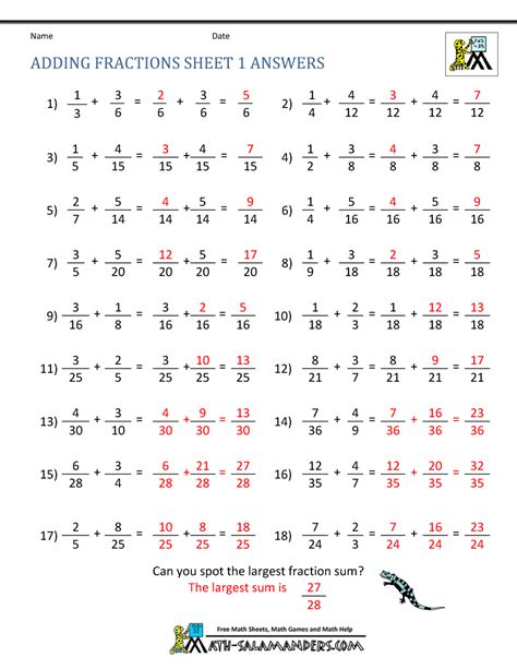 Download Free Fraction Worksheets With Answer Key Kindle Editon