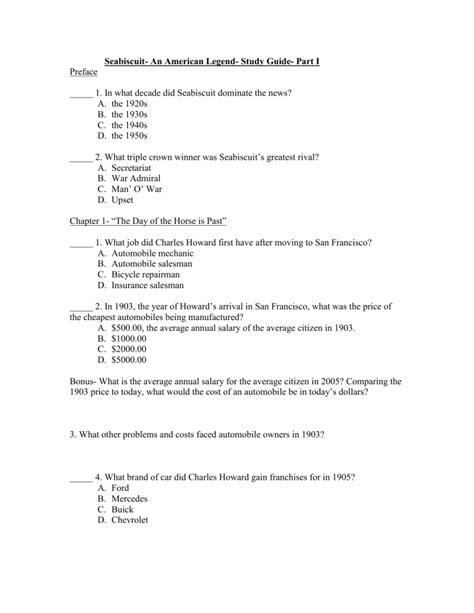 Read Online Seabiscuit Study Guide Answer Key Reader